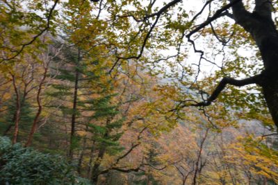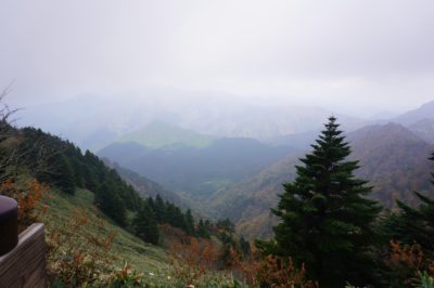 山頂は残念ながら紅葉は終わってましたが、山の中腹はちょうど見ごろを迎えておりました。(とはいえガスと見事な曇り空ですが)